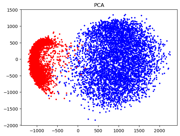 The cats and dogs dataset presents a more challenging classification problem, with PCA revealing significant overlap between the two classes. This overlap indicates a less distinct separation, making the task of accurately distinguishing between cats and dogs more complex.